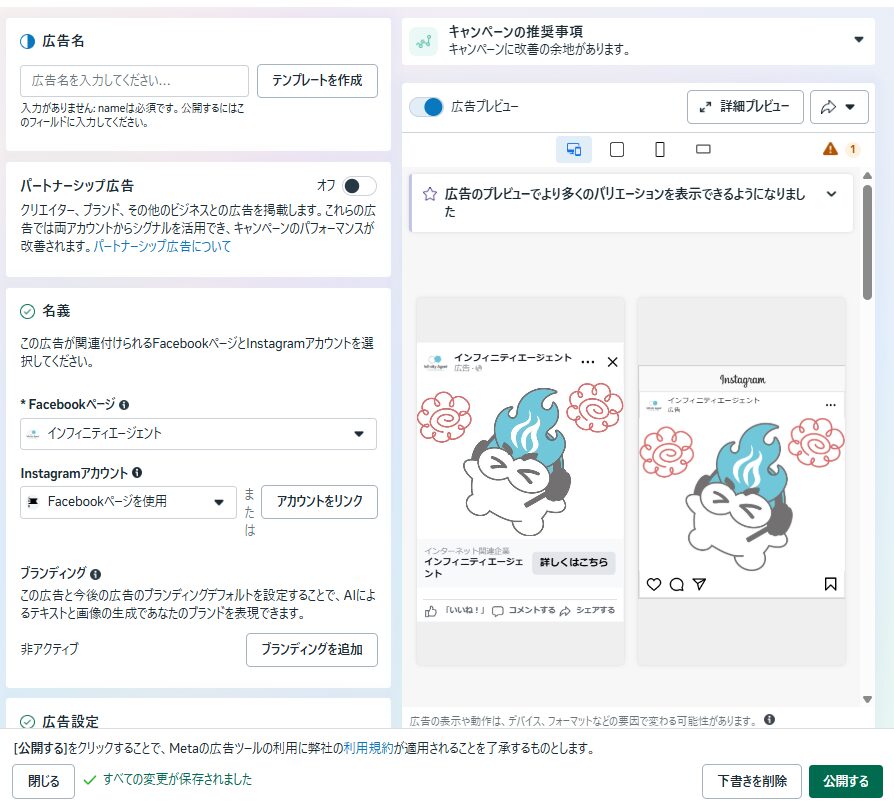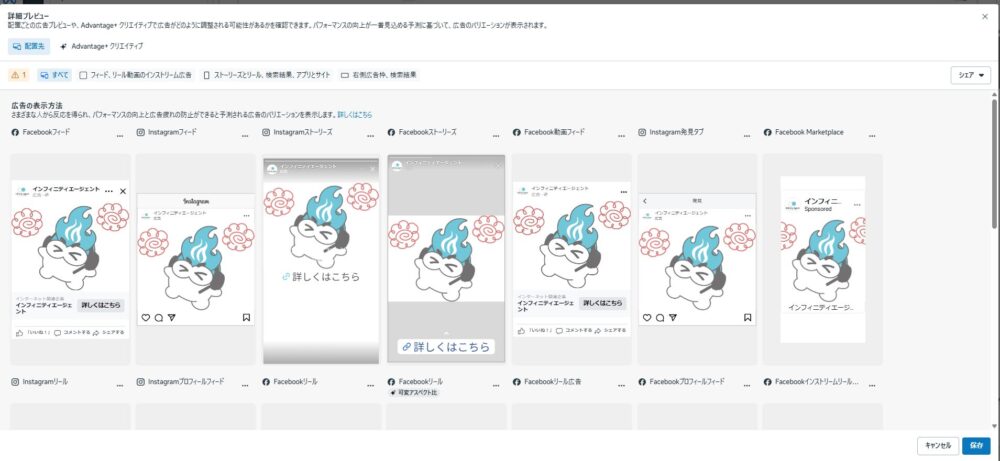 広告のプレビュー画面を見ることができ、
