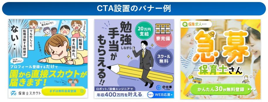 解説した配色やフォントの使い分けを、実際のバナーで確認したい方は以下の事例集をご活用ください。