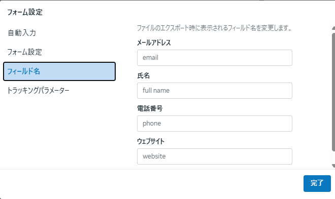 CRMツールを連携している場合は、フィールド名を設定することで、