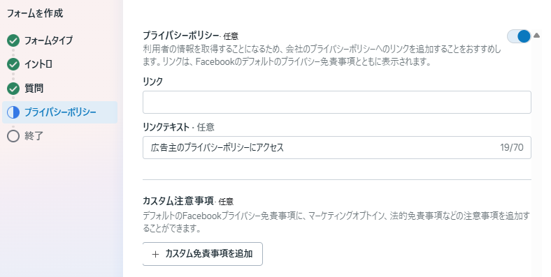 リード獲得広告を作成する場合、