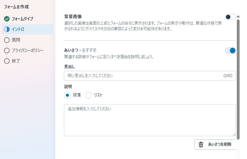 イントロ内ではあいさつも作成することができます。