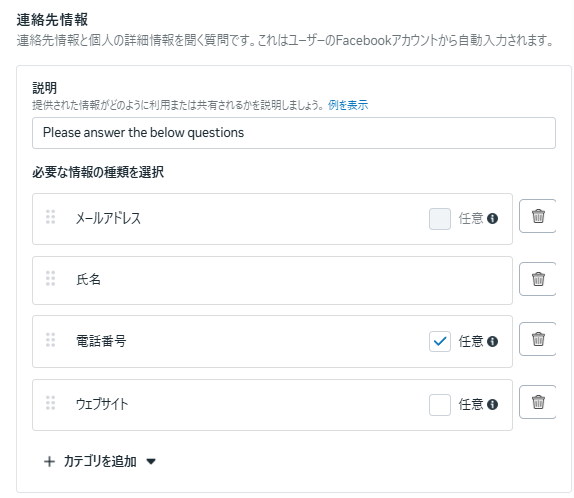 できるだけFacebookに登録可能な情報で項目を作成するように心がけましょう。