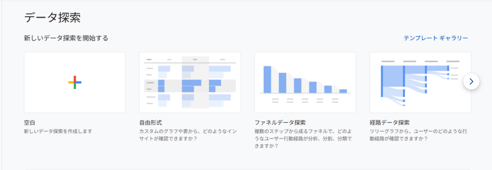 「自由形式」や「経路探索」など、目的に合った探索レポートを選択します。