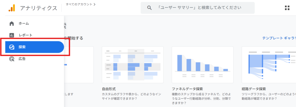 ①「探索」レポートへ移動