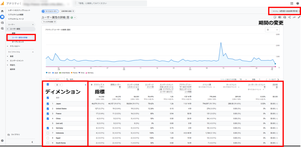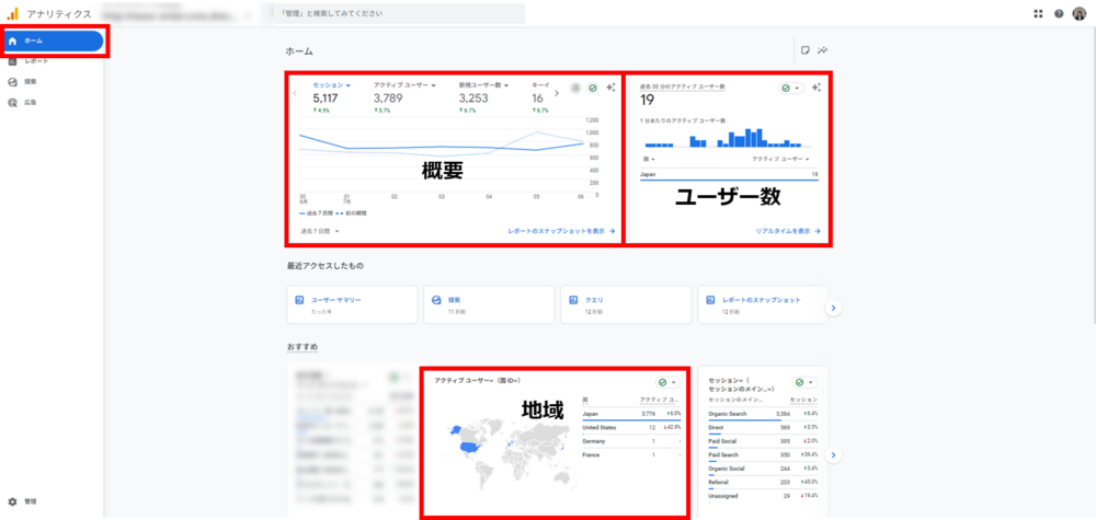 - 地域:どのエリアからユーザーが流入しているか確認できます