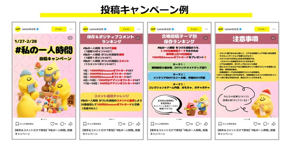 ※画像引用(出典:Lemon8公式)3-3. 公式キャンペーン参加による露出の拡大