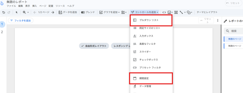 これを設置することで、レポートを見る人が自由に条件を切り替えられるようになります。