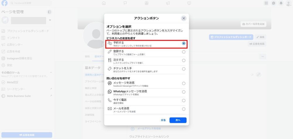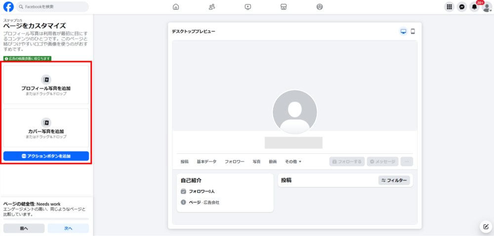 ⑦ 任意でプロフィール写真とカバー写真、アクションボタンの追加