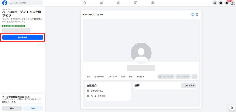⑨ 任意でFacebookアカウントの友達に、Facebookページをフォローするよう招待を送ることが可能