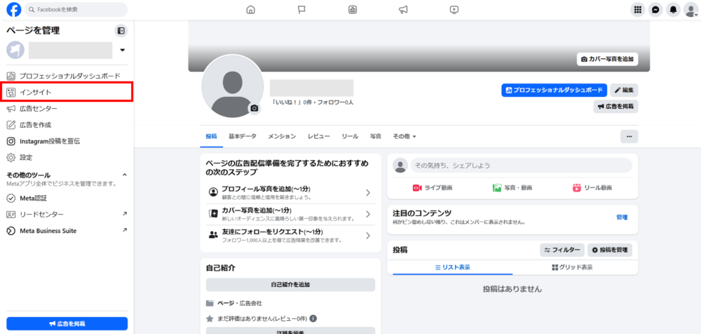 Facebookページには「インサイト」と呼ばれる分析機能があります。