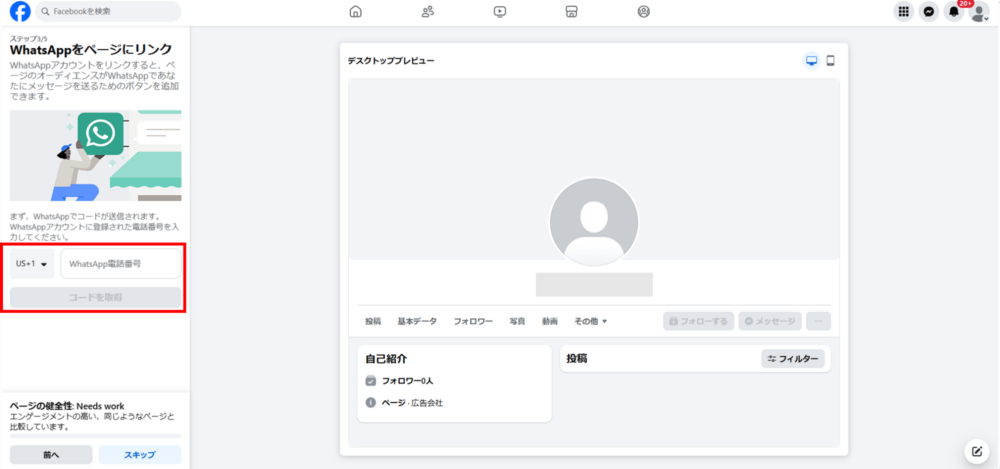 ⑧ 任意でWhatsAppアカウントをリンクすることが可能