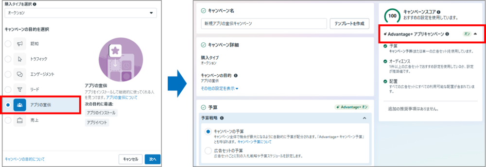 ※参考:ビジネスヘルプセンター(Advantage+ アプリキャンペーンについて, 新しいAdvantage+ キャンペーン設定について )