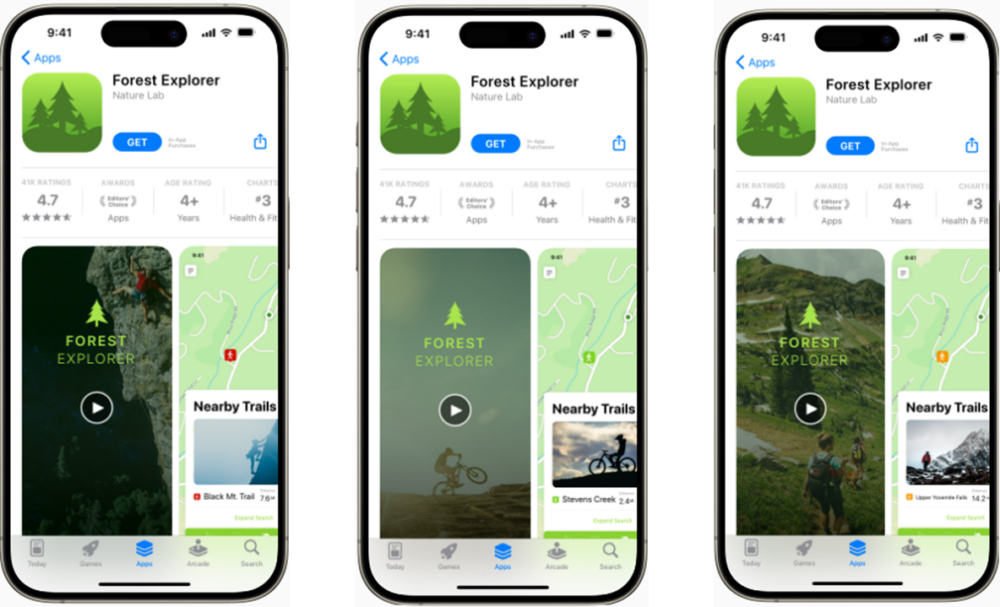 アプリの実際の操作画面を映すことで、インストール前に「どんな体験ができるか」を
