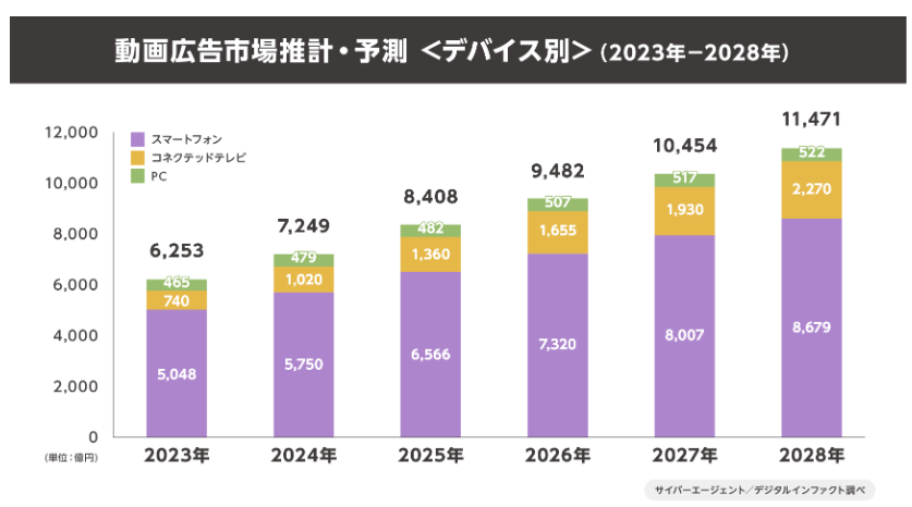 ※画像引用(出典:サイバーエージェント、2024年国内動画広告の市場調査を実施|サイバーエージェント