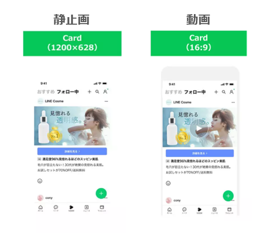 Cardは横長の形式で表示される静止画(1200×628ピクセル)と