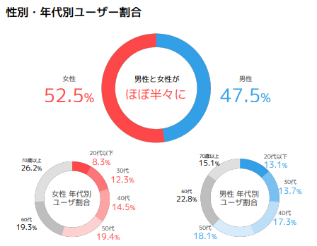 スマートニュース広告は女性と男性のユーザー率がほとんど同じであるため、