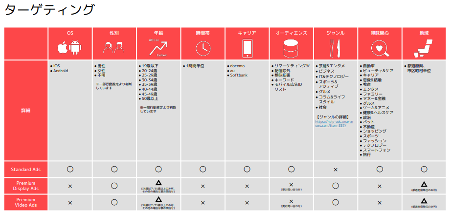 上記のように、細かいターゲティングが可能になっていることが特徴です。