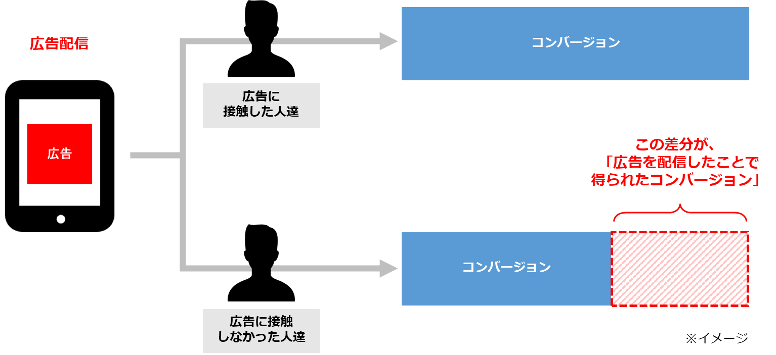 広告配信前後でコンバージョン数が増えても、それが本当に広告の影響によるものなのか、