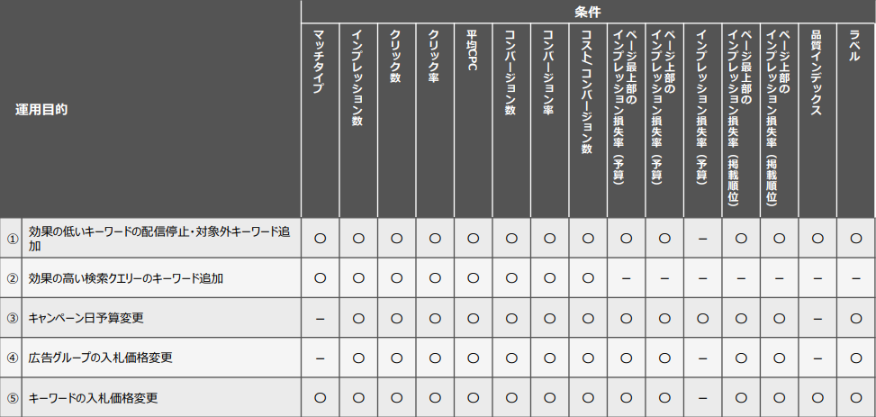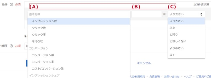 コンバージョン数やコンバージョン単価などの条件を設定しておくことで、