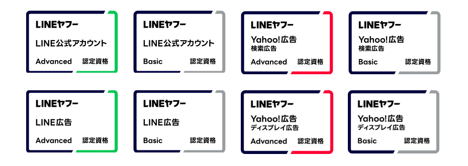 LINEヤフーマーケティングキャンパスでは、以下の8つの認定資格が用意されています。