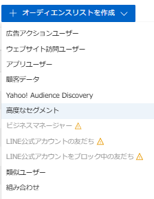 類似ユーザーの作成はYahoo!ディスプレイ広告の管理ツールより行います。