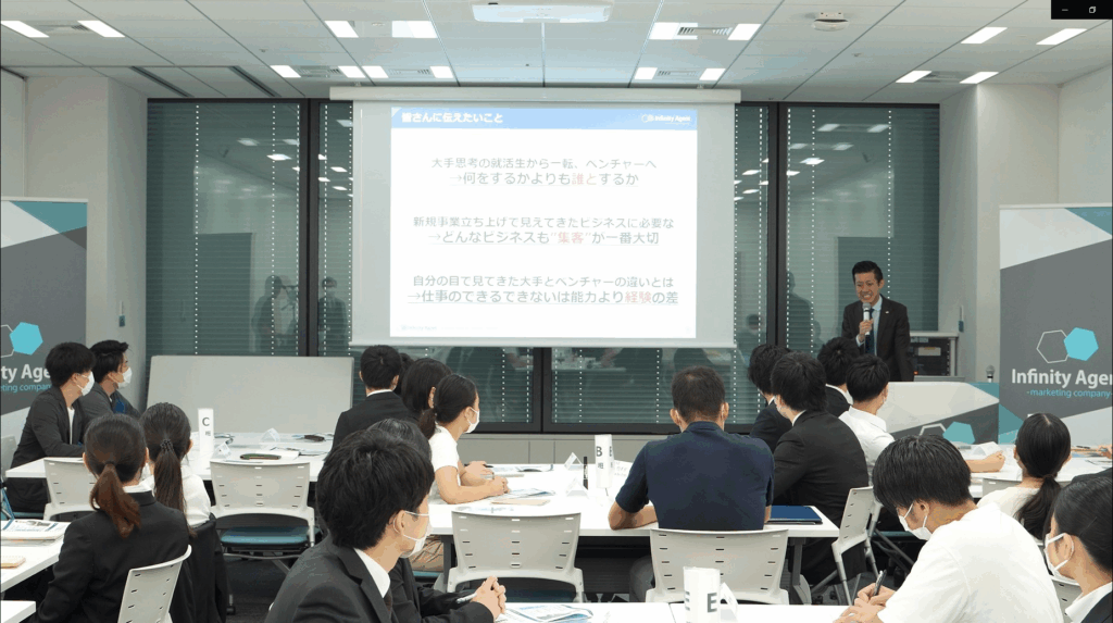 事業内容・理念・ビジョン・働き方・先輩メンバーの成長ストーリーをお伝えする場です。選考ではなく「当社を知る」ための場ですが、選考プロセス全体の最初の接点になります。