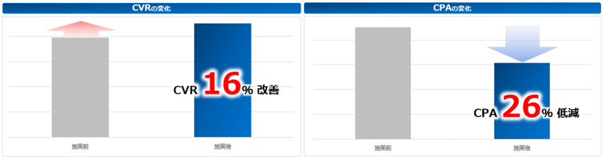 この施策を実装することで、CVR(獲得率)が約16%に改善、CPA(獲得単価)が約26%低減という成果を実現しました。
