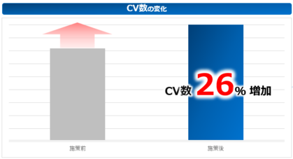 P-MAX導入後の成果は、CPA(獲得単価)をほぼ維持したまま、CV数(獲得件数)を約26 %増加させることができました。