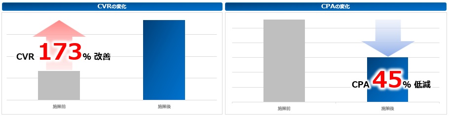 この施策を実装することで、CVR(獲得率)約173%改善、CPA(獲得単価)約45%低減という成果を実現しました。